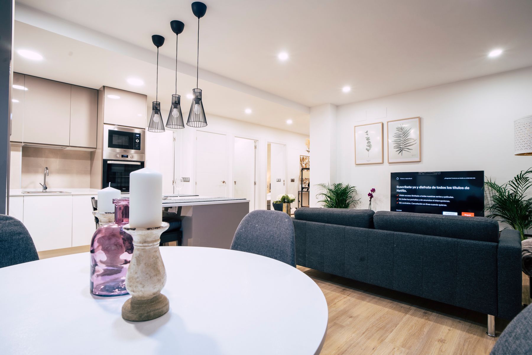 Vivienda de 120 metros² en pleno Barrio de Salamanca, Madrid. Distribuida en 2 habitaciones y 2 cuartos de baño, salón con cocina incorporada y terraza privada. Proyecto de reforma completa y decoración.